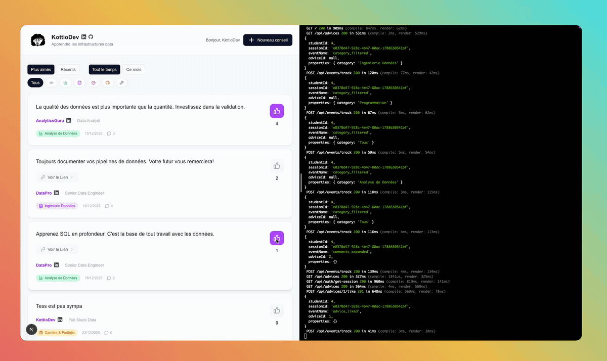 Cette application est en production, apprenez les vrais défis et construisez un portfolio unique.